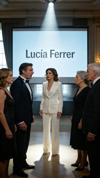 A las ocho y cuarenta y siete de la tarde, Lucía llegó al hotel de la Castellana con un traje marfil, el pelo recogido y una carpeta delgada bajo el brazo. Desde bastidores oyó aplausos, copas, música suave y la voz de Álvaro calentando al público. En la pantalla principal aún brillaba el logo familiar. Faltaban dos minutos para que cambiara. Lucía respiró una vez, despacio, mientras un técnico le preguntaba si estaba lista para salir.