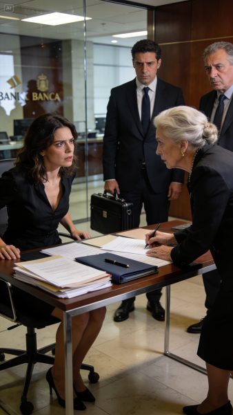 El plan fue simple. Yo devolvería la llamada y diría que estaba asustada, que no quería problemas para Javier y que iría al banco a firmar. Me colocaron un micrófono bajo la blusa y me acompañaron hasta una cafetería frente a la sucursal. Desde allí vi llegar primero a Raúl, el director, con un maletín negro. Cinco minutos después apareció Ignacio Beltrán. Teresa fue la última. Llevaba el mismo abrigo camel del día anterior y unas gafas oscuras demasiado grandes para aquella mañana nublada. Cuando entramos, Álvaro estaba en su puesto, pálido pero firme. Teresa ni siquiera fingió afecto. Me condujo a un despacho interior y dejó sobre la mesa tres carpetas. “Firmas esto, recogemos la caja y esta pesadilla termina”, dijo.