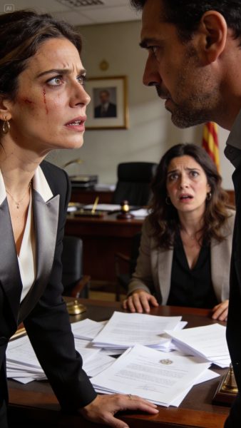 Nos vimos en el despacho de Belén. Entró con una expresión agotada, pero no derrotada; todavía conservaba ese tono suyo de hombre que cree poder negociar la realidad. Dijo que pensaba contármelo todo cuando terminara “la asignación”, que se había dejado arrastrar, que conmigo no sabía cómo romper, que con Clara las cosas se complicaron. Belén lo dejó hablar hasta que se quedó sin aire y luego puso sobre la mesa las copias de las firmas, los recibos de la guardería y su expediente laboral. El silencio le cayó encima como una losa.
