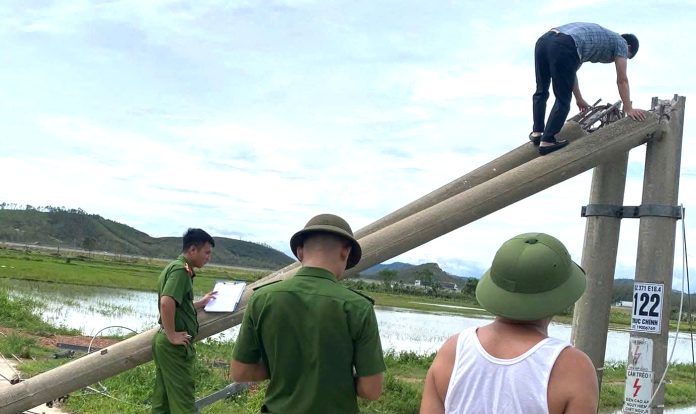 Hai cột điện trên tuyến đường 35kV tại xã Xuân Lộc (Hà Tĩnh) gãy, đổ sau bão số 10, để lộ phần sắt bên trong. Trước thông tin trái chiều lan truyền trên mạng xã hội, lực lượng công an nhanh chóng vào cuộc xác minh, làm rõ vụ việc.
