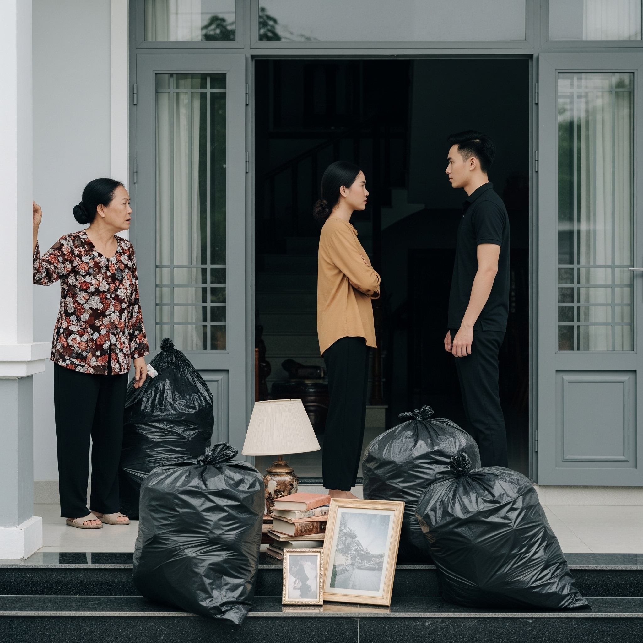 Tối đó, bà thu dọn đồ, định lặng lẽ đi. Nhưng khi vừa kéo vali xuống tầng, ông Minh đã đứng sẵn ở cửa.